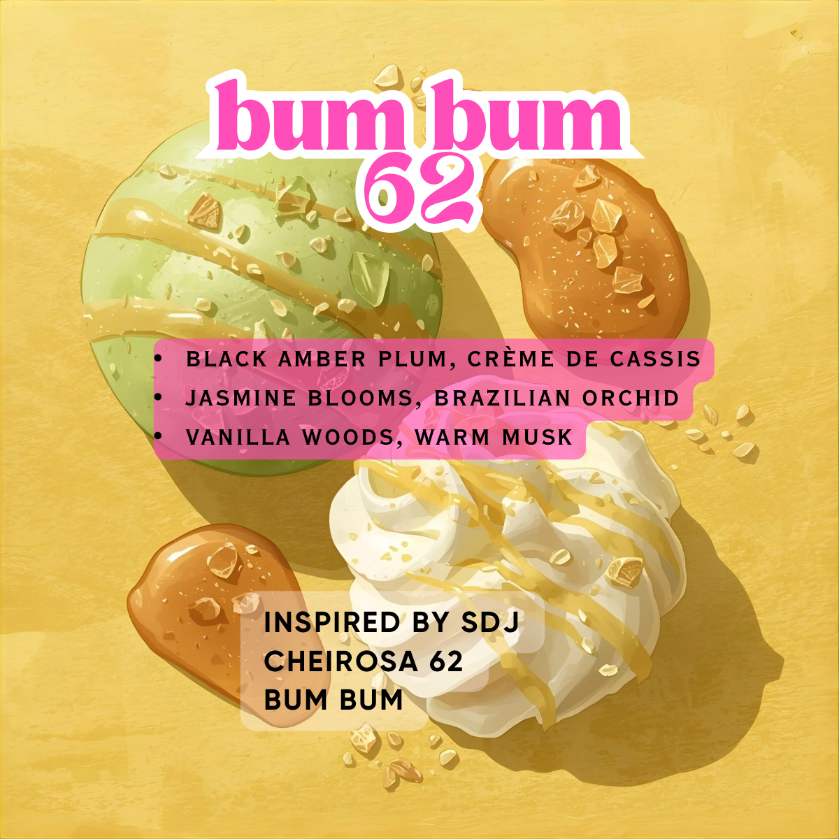 Bum Bum 62: Inspired by Sol De Janerio Cheirosa 62 VANILLA & SALTED CARAMEL, PISTACHIO