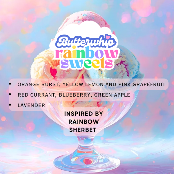 Rainbow Treats: orange burst, yellow lemon, red currant, blueberry, green apple, lavender