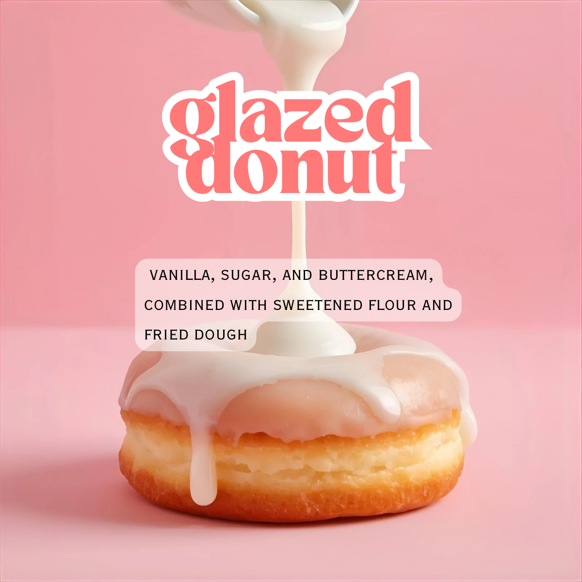 Glazed Donut: warm donut, vanilla glaze, hint of caramel